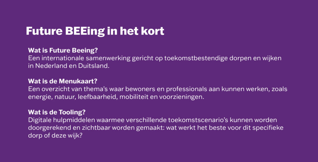 FutureBEEing is een grensoverstijgende samenwerking waarin bewoners, professionals en overheden werken aan een duurzame, leefbare en toekomstbestendige omgeving. Voor DOC33 een belangrijk voorbeeld van hoe we regionale innovatie en participatie verbinden.